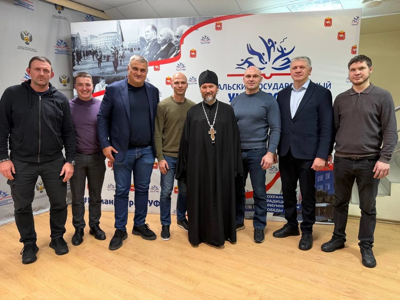 Рабочий визит начался со встречи в Уральском государственном университете физической культуры, участниками которой стали представители Министерства по физической культуре и спорту Челябинской области, Дирекции спортивно-массовых мероприятий, руководители федераций и спортивных школ, профессорско-преподавательский состав университета, духовенство, тренеры, спортсмены и студенты.