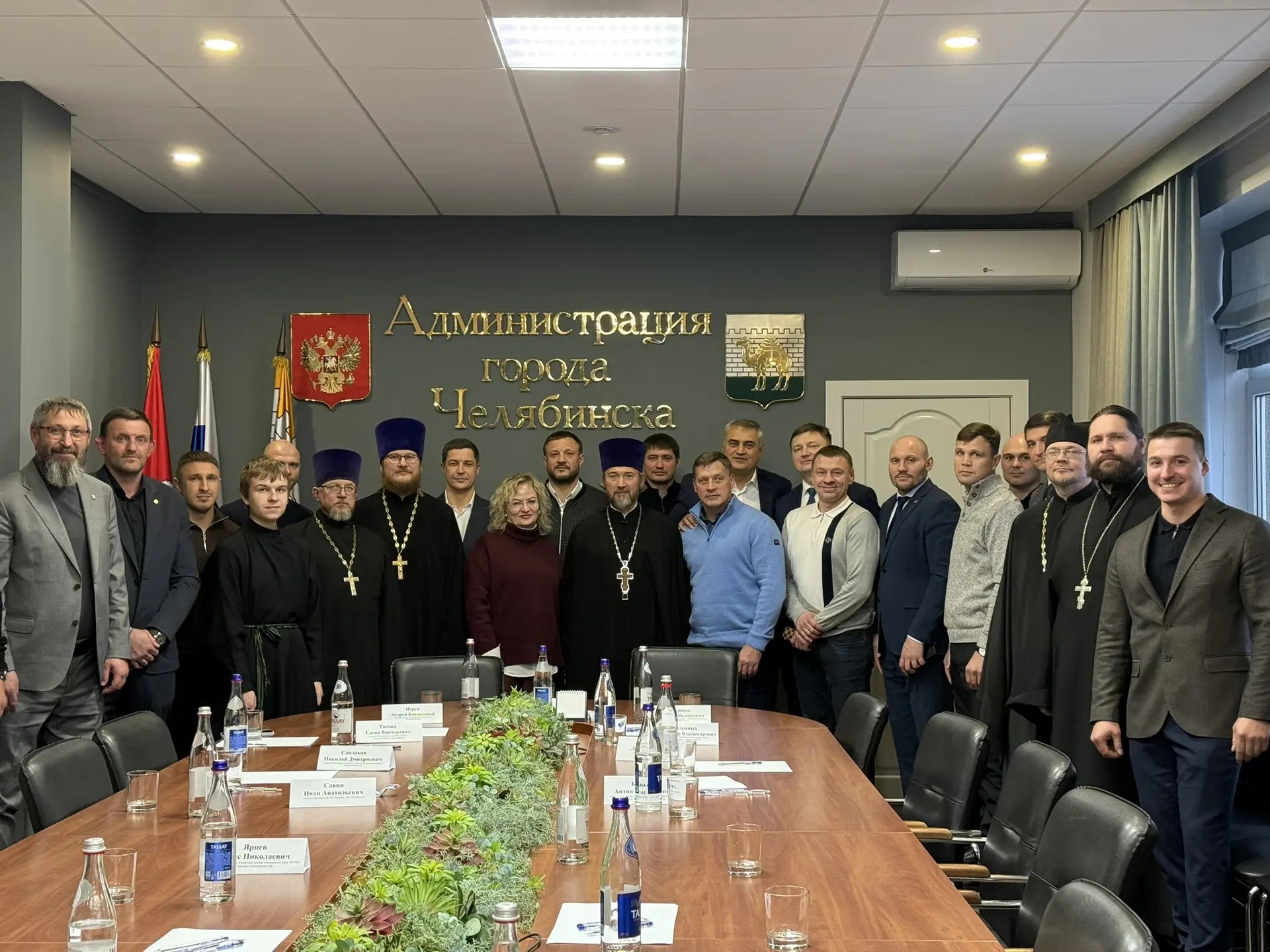 На следующий день в мэрии города Челябинска состоялось расширенное заседание общего собрания спортивного отдела Челябинской епархии. В межведомственном совещании приняли участие как члены, так и приглашённые почётные гости: руководитель отдела по физической культуре и спорту Челябинской епархии, член Общественного совета при Министерстве по физической культуре и спорту Челябинской области иерей Андрей Ковшевный, начальник управления по физической культуре и спорту администрации города Челябинска Александр Ильиных, начальник управления по взаимодействию с общественными организациями администрации города Челябинска Вячеслав Борисов, исполняющий обязанности ректора Уральского государственного университета физической культуры Виталий Игнатенко, президент Федерации MMA Челябинской области Данила Кузьмин, генеральный директор ХК «Трактор» и ФК «Челябинск» Иван Савин, директор РМК-Арены, президент Федерации баскетбола Челябинской области Николай Сандаков, председатель коллегии судей Федерации бокса Челябинской области Игорь Бещук, директор юридического института Южно-Уральского государственного университета, доктор юридических наук, профессор Елена Титова, депутаты Челябинской городской Думы, директора центров спортивной подготовки, объектов спорта, представители региональных отделений Всемирного Русского Народного Собора и общественного движения «Сорок Сороков», известные спортсмены, тренеры, духовенство и общественные деятели.