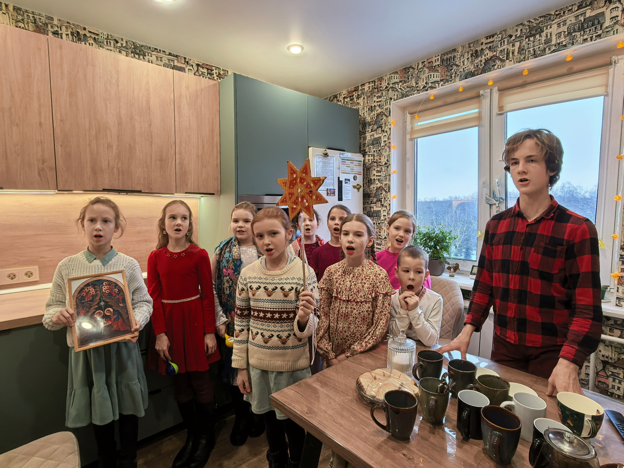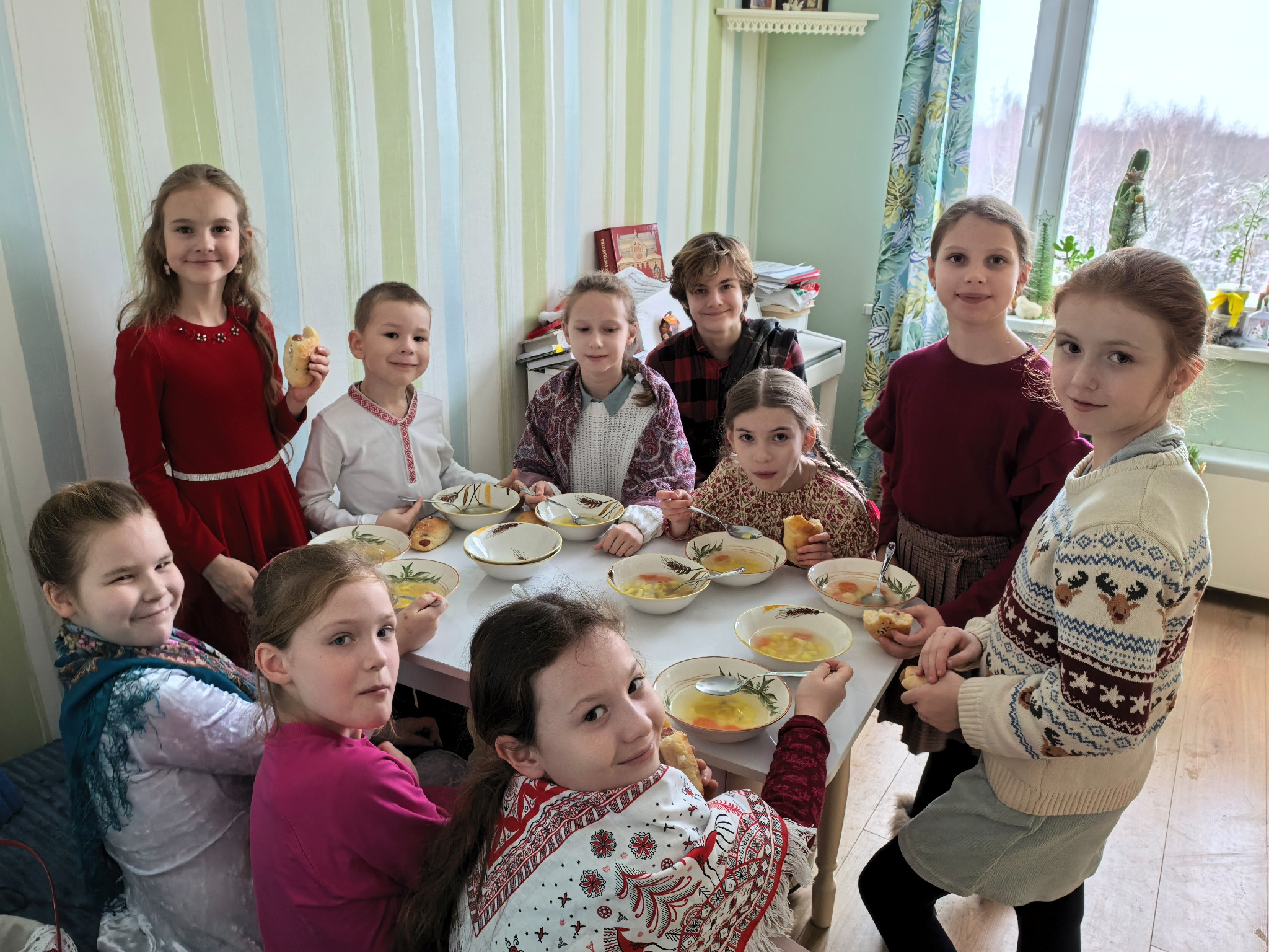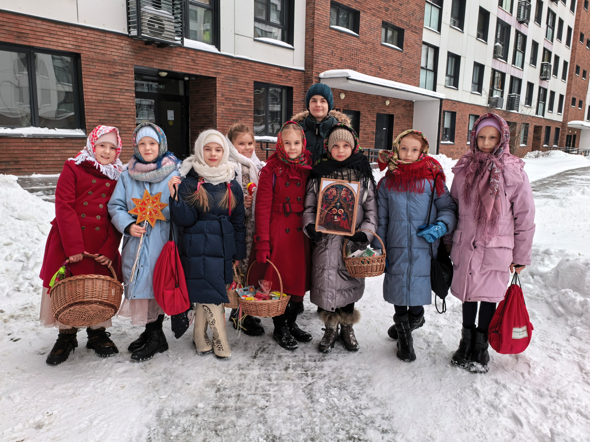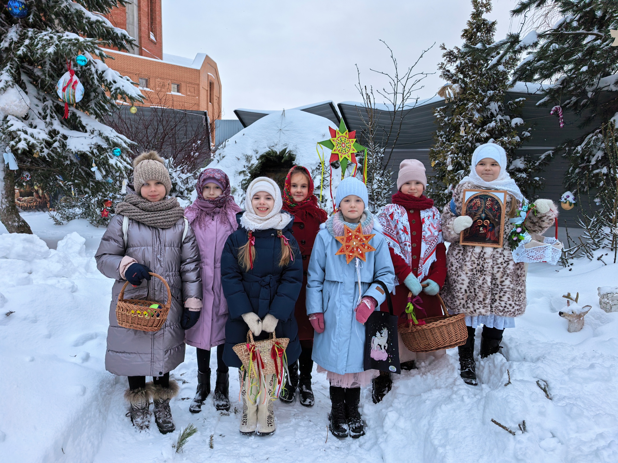 Песнопения были спеты, колядки завершились, и бабушка одарила христославов самым лучшим, припасённым ещё с вечера. Здесь были и домашние колбаски, и другие деревенские продукты, приготовленные специально для них, а точнее – для Христа.