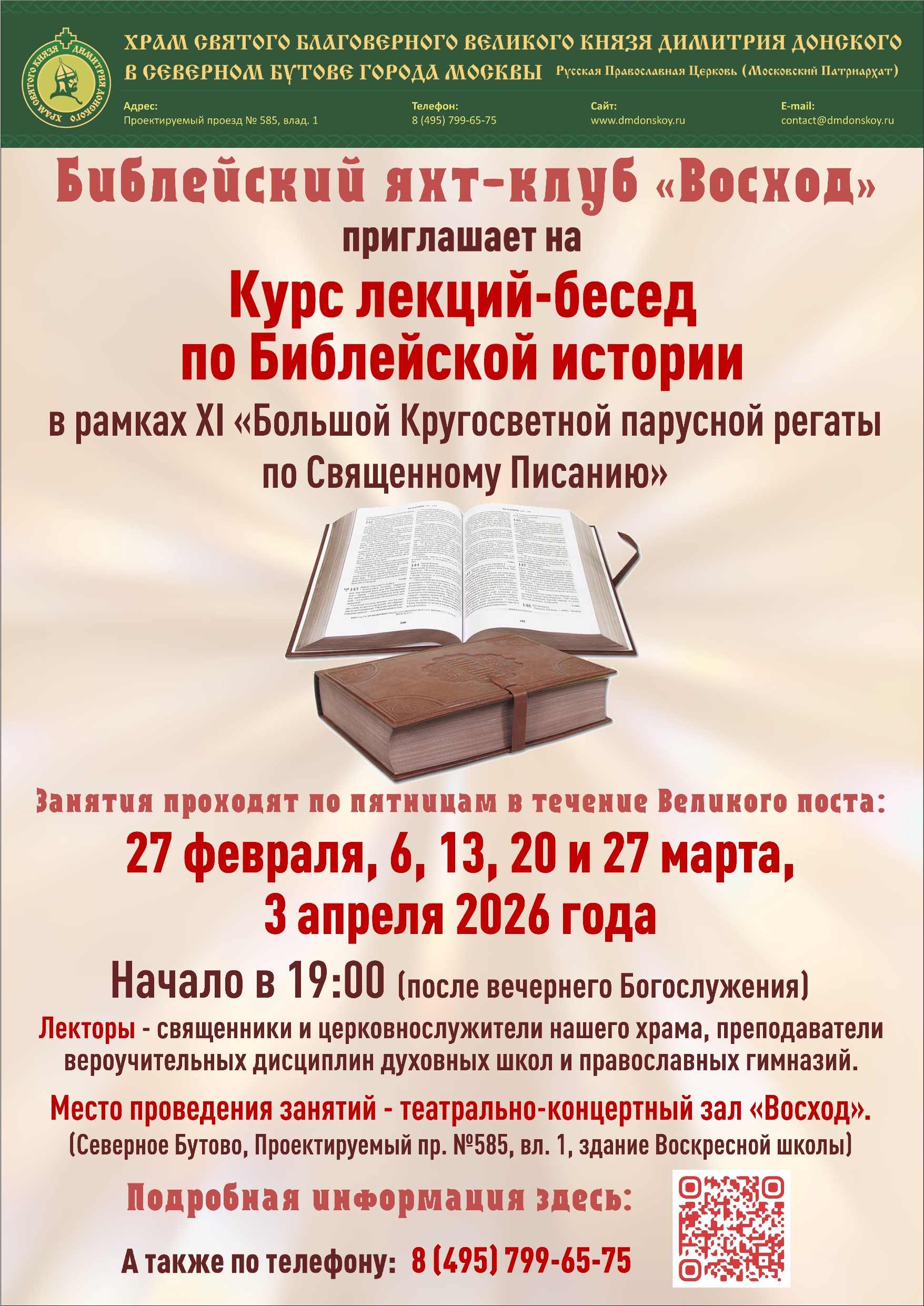 Библейский клуб «Восход» приглашает вас на Курс лекций-бесед по Библейской истории в рамках XI «Большой Кругосветной парусной регаты по Священному Писанию».