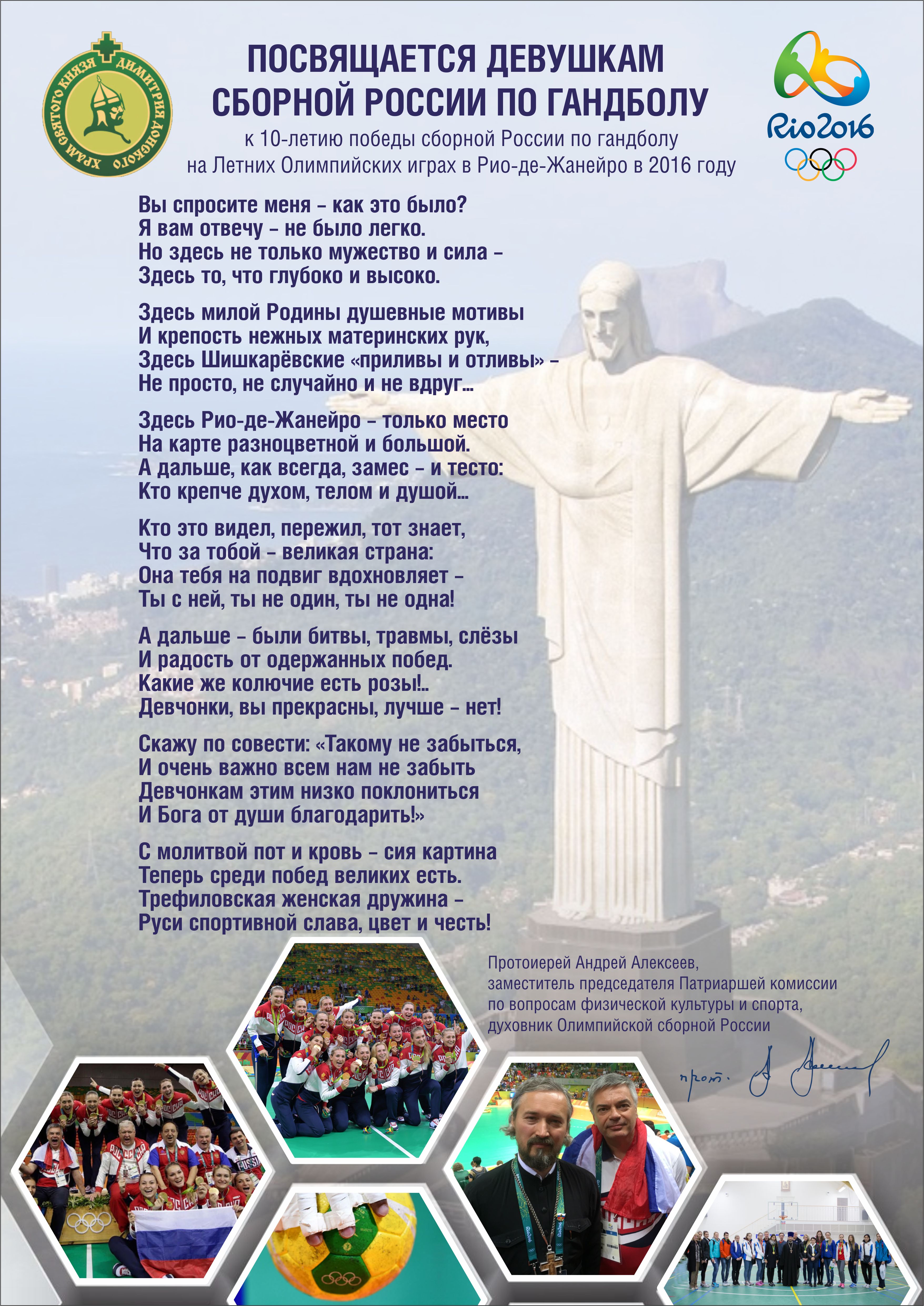 Протоиерей Андрей Алексеев о 10-летии победы женской сборной России по гандболу на Олимпиаде в Рио-де-Жанейро