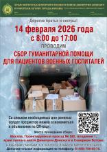 В субботу 14 февраля 2026 года у нас на Подворье пройдёт очередной сбор гуманитарной помощи для военных госпиталей, где лежат наши раненые солдаты.