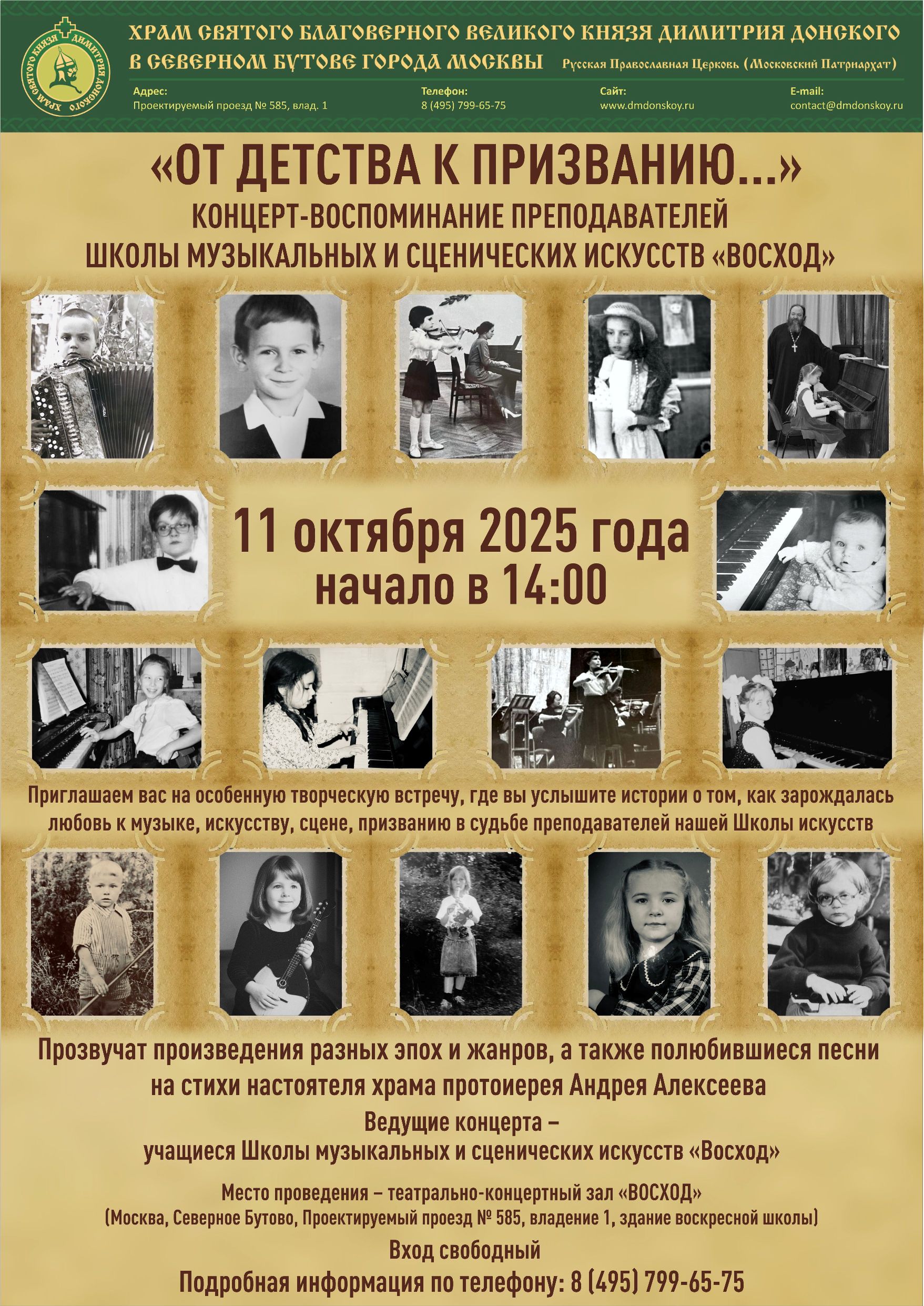 Приглашаем вас на творческий вечер «От детства к призванию…»: концерт-воспоминание преподавателей Школы музыкальных и сценических искусств «Восход».