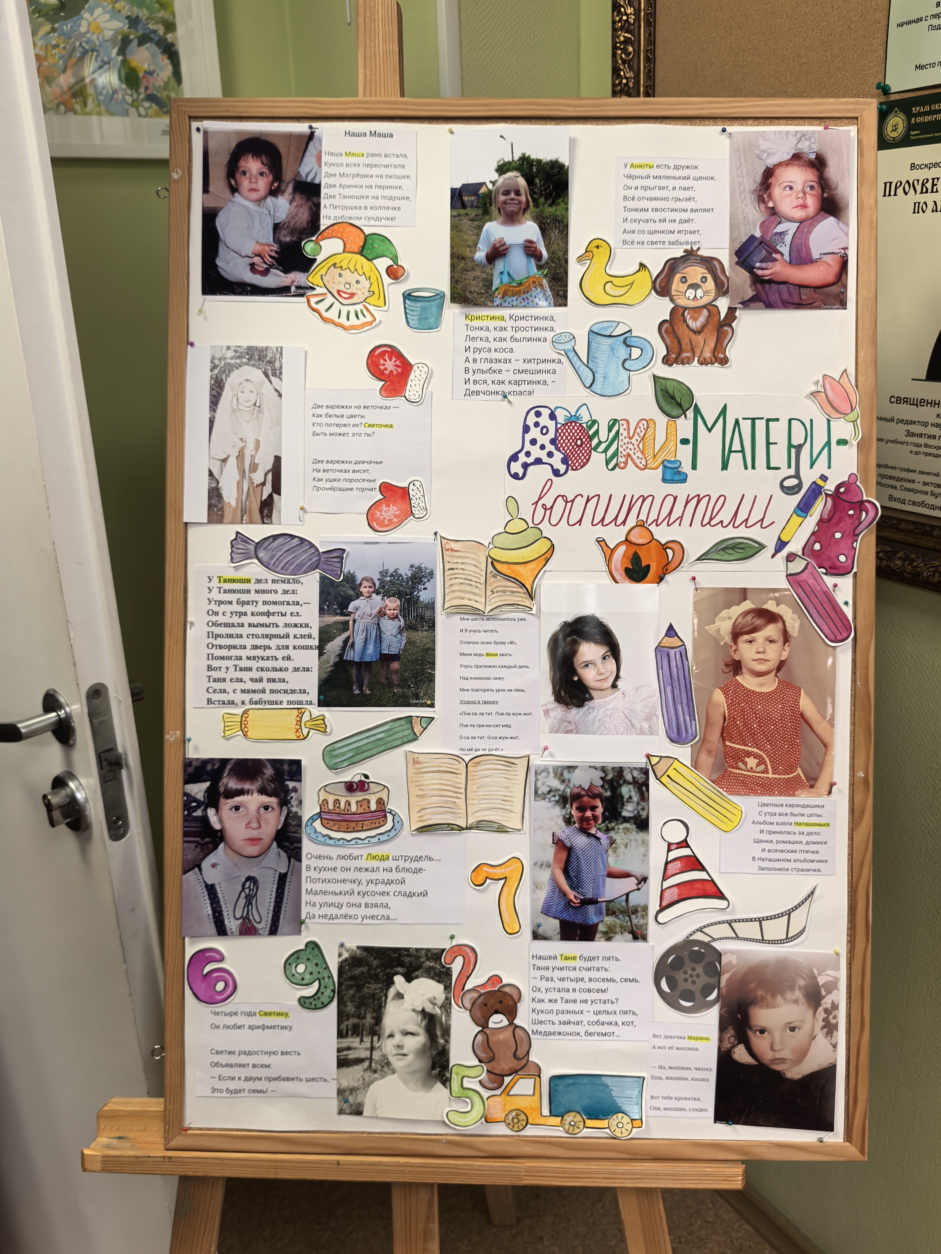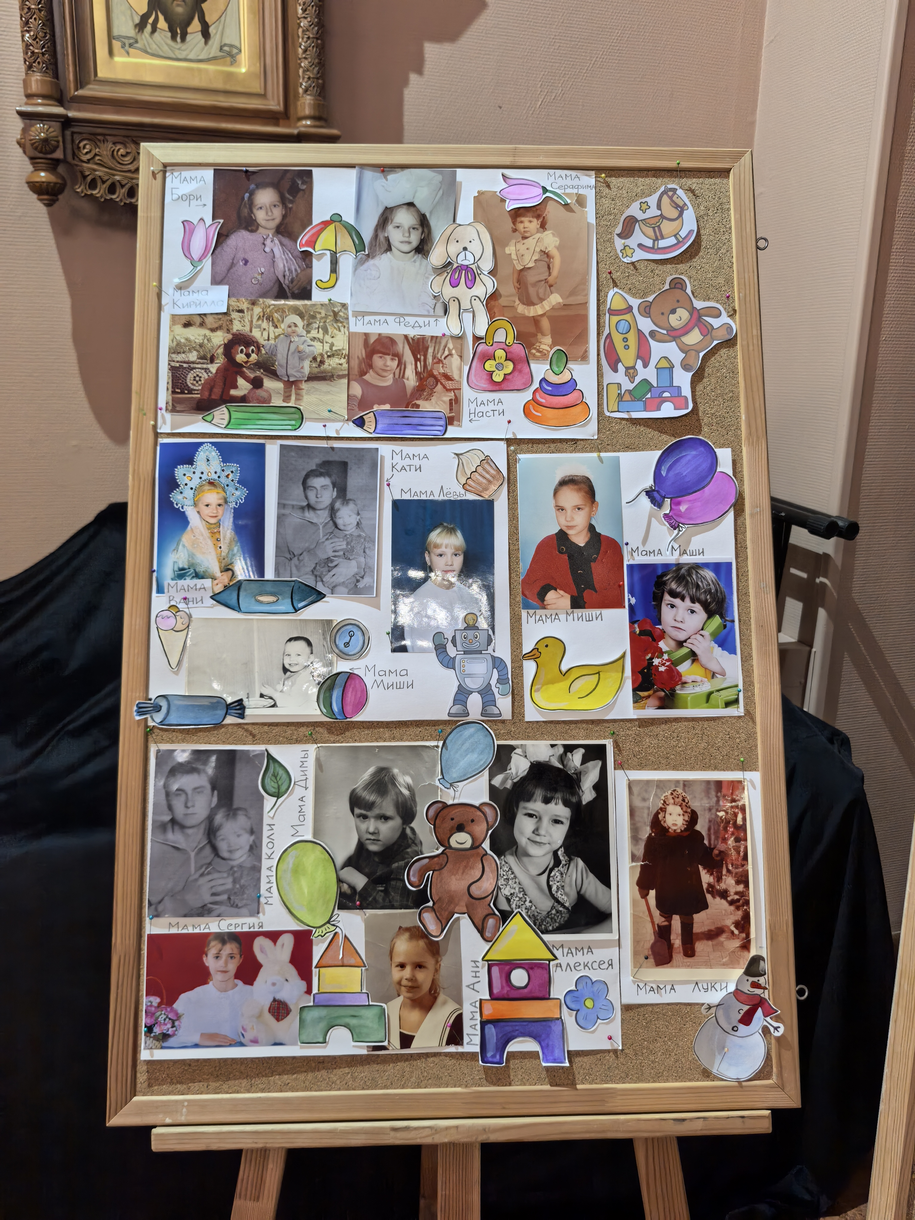 Гости, среди которых были, конечно, не только мамы, но и папы, бабушки и дедушки, собрались в театрально-концертном зале, где их встречали стенды с милыми детскими фотографиями мам учеников. И, конечно, все с большим интересом искали на стендах знакомые лица, угадывая сходство с детьми в чертах и мимике.